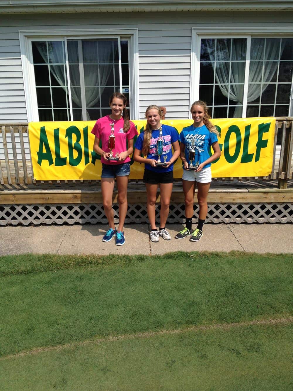 The 17th annual Albia Golf Club Junior Championship was held Monday, June 21 with 32 golfers competing in seven age divisions. There was additional drama on the course for the 2014 version of the Championship as three of the divisions went into playoffs to decide the winner. In the 14-15 age boys group, Trent Garver won a playoff over Nick Maddison to claim the trophy after shooting 46 for nine holes. Garrett Gray was third with a 61. In the girls 14-15 age group, Sydney DeBruin shot 41 for first place in six holes as Jade Van Polen had 46 and Jordan Winke shot 50. In another playoff, Gage Wilson defeated Ian Flahive in the boys 12-13 age grouping by winning the first playoff hole after both golfers shot 43 for seven holes. Close behind in third place was Cody Kosman with a 47. In a grouping of seven golfers in the boys 10-11 age bracket, Chase Maddison won by eight shots with a 41 in seven holes. David Fisher fired a 49 and Jackson Pence a 50 to claim second and third place respectively. Cooper Hassinen was in fourth place with a 55. Connor Fisher won the 8-9 year old boys division in a tight contest, shooting a 35 for four holes. Landen Simpson shot 38 for the second place trophy and Sam Shepard shot 39 for the third place trophy. Emma Bradley shot a 22 for four holes including a birdie three on the par 4 third hole to narrowly defeat Ella Zaputil by three shots in the girls 8-9 division. Lucy Hassinen was third with a 38 in her first year of golf. Cael Schofield won a playoff to capture first place in the boys 6-7 age division. Schofield and Cooper Bradley both shot 26 and Owen Hassinen shot 37 over four holes. Over forty different junior golfers played two months of league play prior to the Championship.